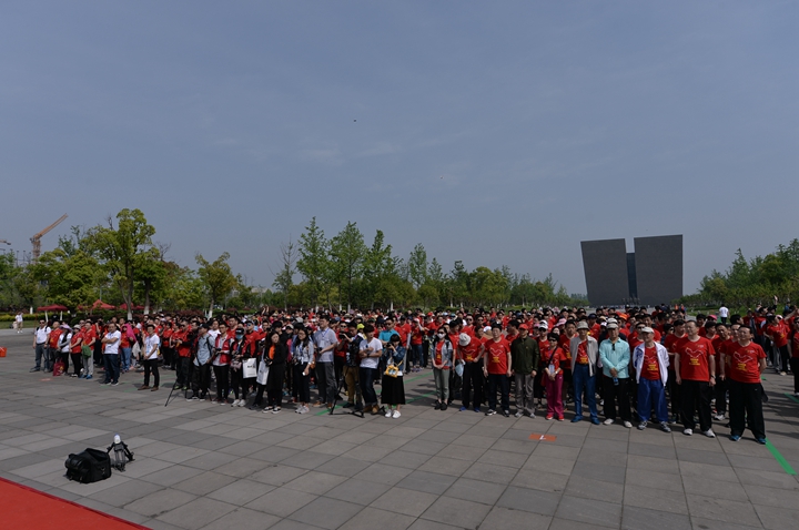 4月22日上午9點半,毅行開幕式在濱湖新區(qū)渡江戰(zhàn)役紀念館解放碑廣場舉行。安糧集團董事長為活動開幕致辭,國貿(mào)集團范陽董事長為毅行代表親授活動司旗。上午10點,安糧控股方宗友常務副總裁扣動發(fā)令槍, 七個毅行方陣浩浩蕩蕩從起點出發(fā)。