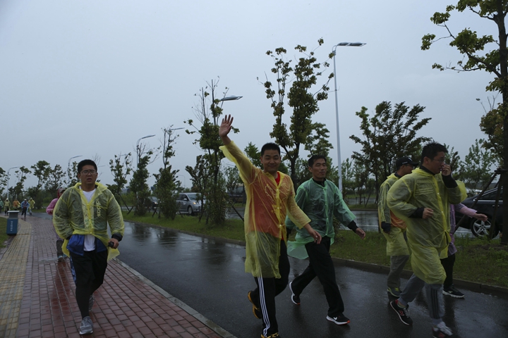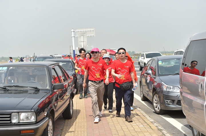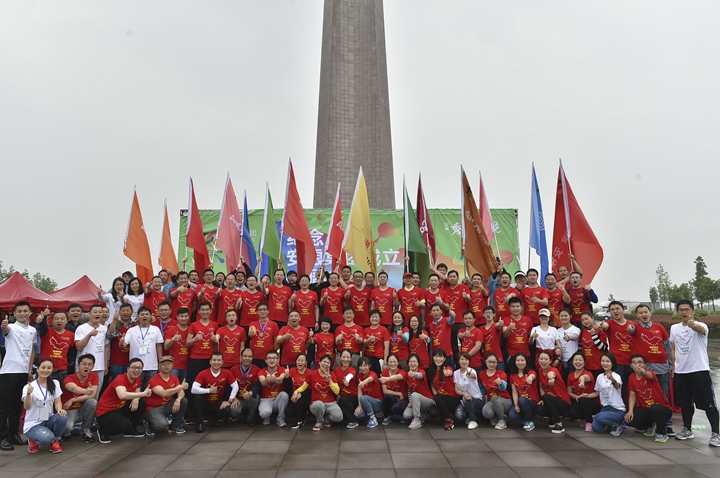23日風雨交加的清晨,公司領(lǐng)導班子抵達最后一階段起點,與徒步隊伍一起向目的地發(fā)起沖刺!9:30,最后一只徒步隊伍沖出雨幕,勝利抵達紀念碑終點站。
