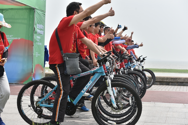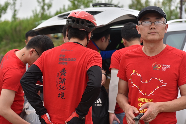 在春雨浸染的幸福氛圍中,現(xiàn)場舉行了簡短的閉幕式,集團、控股、各板塊公司領(lǐng)導,后六程接力隊員和活動志愿者共一百多人參加了閉幕式。在大家的歡呼聲中,在肥的集團領(lǐng)導班子成員為“安糧集團環(huán)巢湖毅行紀念標志”揭幕,并為后六程騎行和徒步的接力隊代表頒發(fā)紀念獎章。