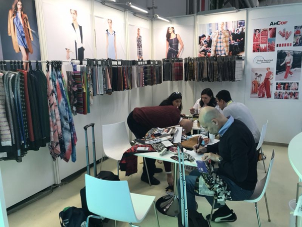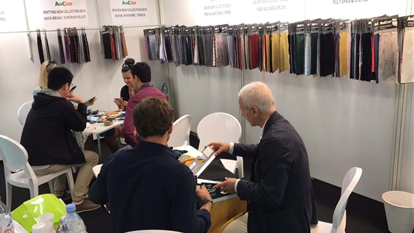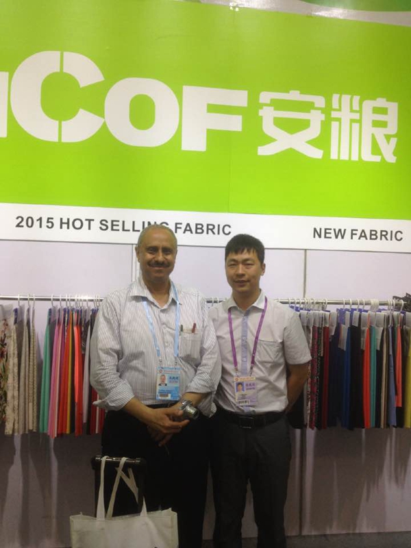 去過廣交會的同事們都知道,廣交會每天的參展任務是異常繁忙且辛苦的。5月1日國際勞動節(jié),也是廣交會三期開展的第一天,位于15.4號館主通道旁邊的安糧紡織品展位人流如織,云集的客商都被展位上精心挑選、花樣繁多的樣品所吸引。面料中晶晶閃閃的亮片、時尚FASHION的提花剪花格外受到客人們的青睞,單朋朋和同事們身邊圍滿了膚色各異的外國客商,他們既熱情又耐心地與每一位客商溝通,介紹產(chǎn)品信息、核算價格并及時登記記錄,便于展會后的持續(xù)跟進,展位上一片熱火朝天。