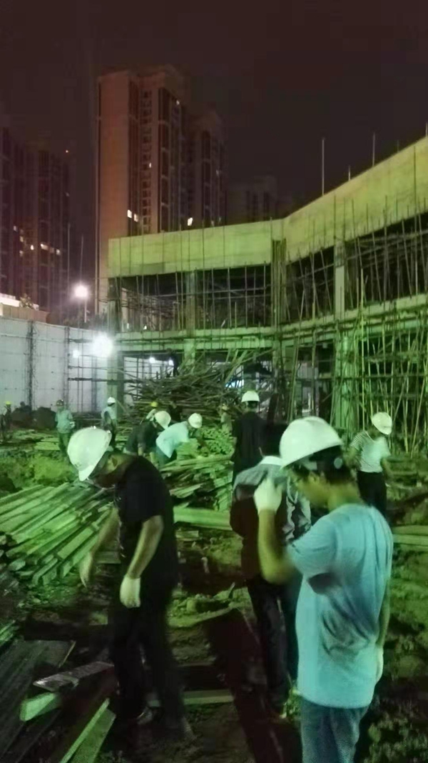 經(jīng)過簡短的會議部署,項目部管理人員即刻動員組織農(nóng)民工加班,楊勇親自和工人們面對面溝通,對工人們曉之以理動之以情。不到11點半,工地現(xiàn)場的工作燈通通亮了起來,鋼筋班組、木工班組、管理人員紛紛投入工作,形成了一組初秋深夜的奏鳴曲。所有管理人員也都在現(xiàn)場陪著工人們一起干,不完成任務誰都不休息。