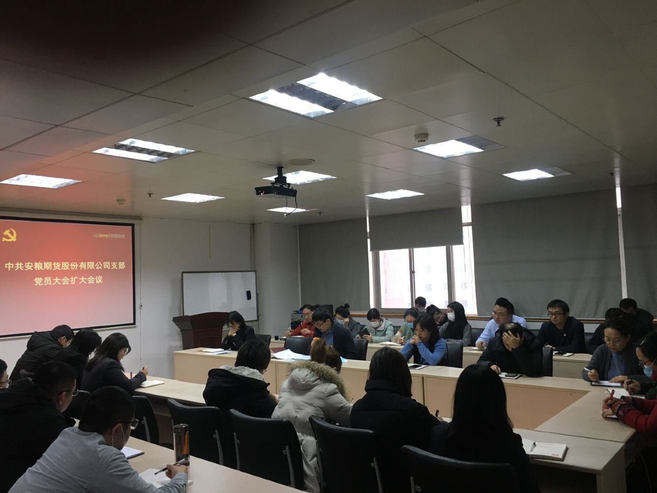 2021年1月26日,安糧期貨黨支部組織召開支部擴(kuò)大會議,深入學(xué)習(xí)了習(xí)近平總書記在十九屆中央紀(jì)委五次全會上的重要講話精神,傳達(dá)了安糧集團(tuán)黨委紀(jì)委及上級有關(guān)文件精神。支部全體黨員參加會議,公司非黨員中層管理人員列席會議,部分出差及駐外員工通過視頻參加會議學(xué)習(xí)。安糧期貨黨支部書記、董事長朱中文主持會議。