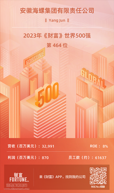 財(cái)富Plus APP于北京時(shí)間2023年8月2日與全球同步發(fā)布了最新的《財(cái)富》世界500強(qiáng)排行榜。海螺集團(tuán)以32,991百萬(wàn)美元的營(yíng)收名列2023年《財(cái)富》世界500強(qiáng)第464位。