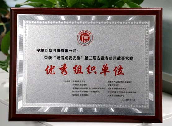 近日,“誠信點贊安徽”第三屆安徽省信用故事大賽結果揭曉,安糧期貨憑借微電影《用堅守筑牢誠信基石》,成功斬獲優(yōu)秀獎,并榮獲優(yōu)秀組織單位稱號,為公司誠信建設添上了濃墨重彩的一筆。