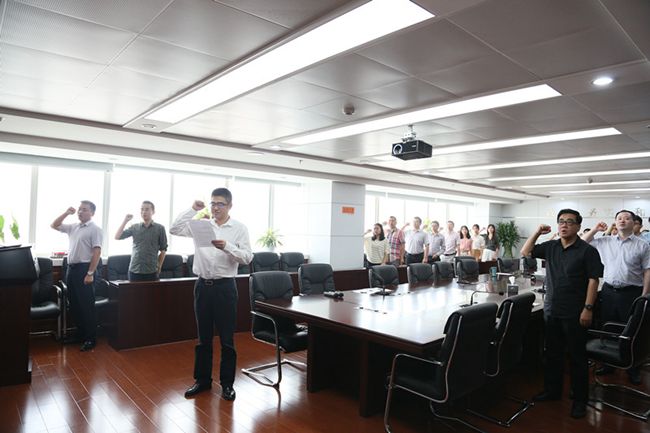 2015年7月1日上午,安糧國際黨支部在15樓會議室舉行“新黨員宣誓、老黨員重溫入黨誓詞”暨迎接中國共產(chǎn)黨成立94周年活動。