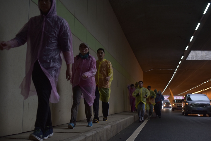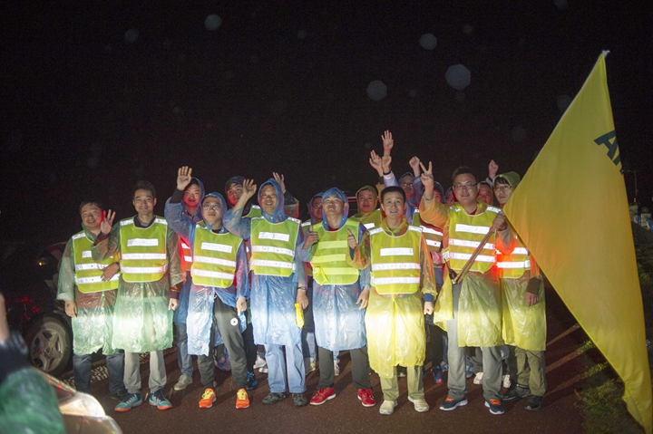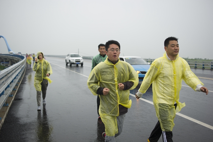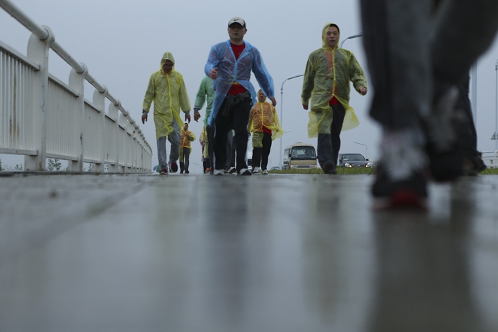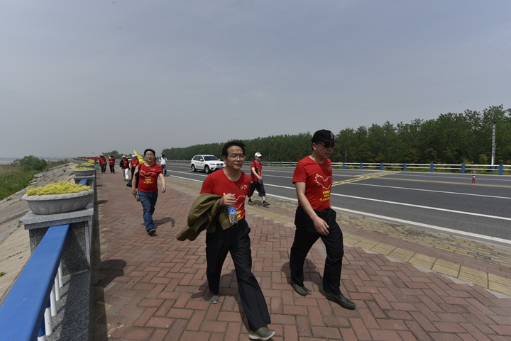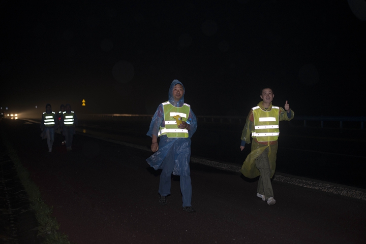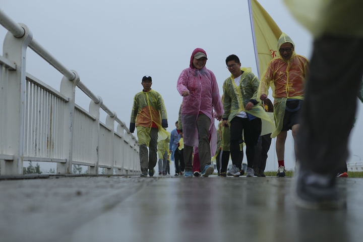 23日風雨交加的清晨,公司領(lǐng)導班子抵達最后一階段起點,與徒步隊伍一起向目的地發(fā)起沖刺!9:30,最后一只徒步隊伍沖出雨幕,勝利抵達紀念碑終點站。