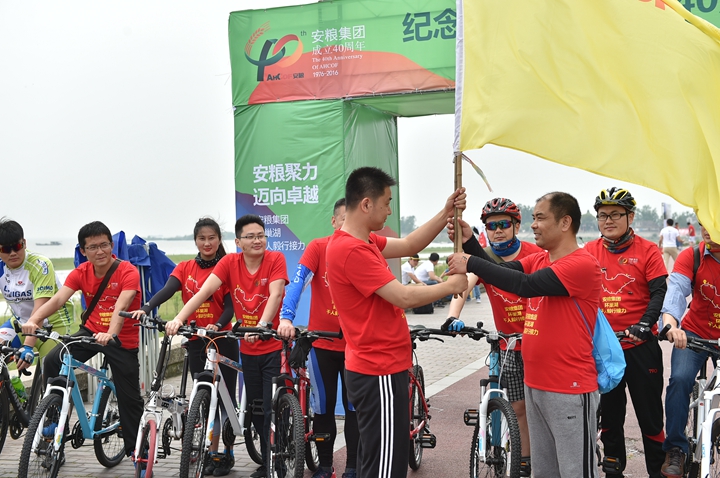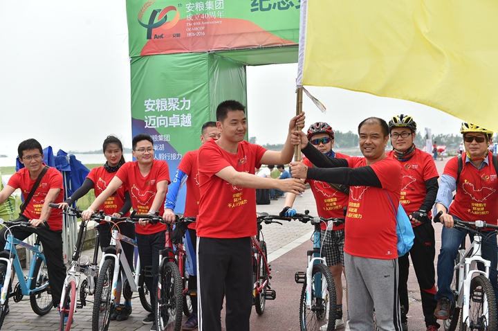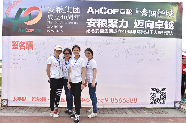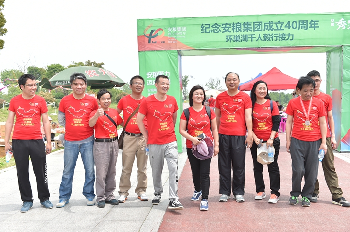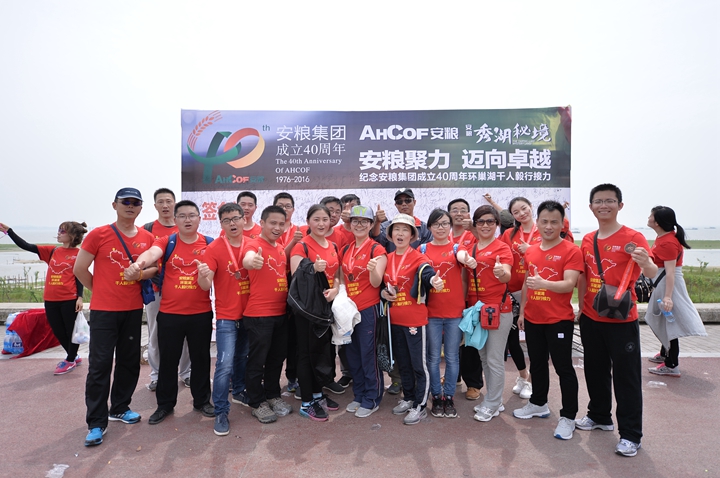 為慶祝安糧集團成立40周年,2016年4月22-23日,為期兩天、歷程160公里的安糧集團環(huán)巢湖千人毅行接力活動在美麗的巢湖之濱熱情上演。本次活動以“安糧聚力,邁向卓越”為主題,共有近千人參與,不僅有公司系統(tǒng)在職員工和退休老領(lǐng)導、老同志,國貿(mào)集團范陽董事長還帶領(lǐng)國貿(mào)集團的20多名同仁前來助陣。