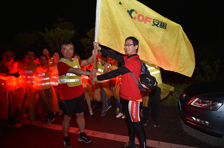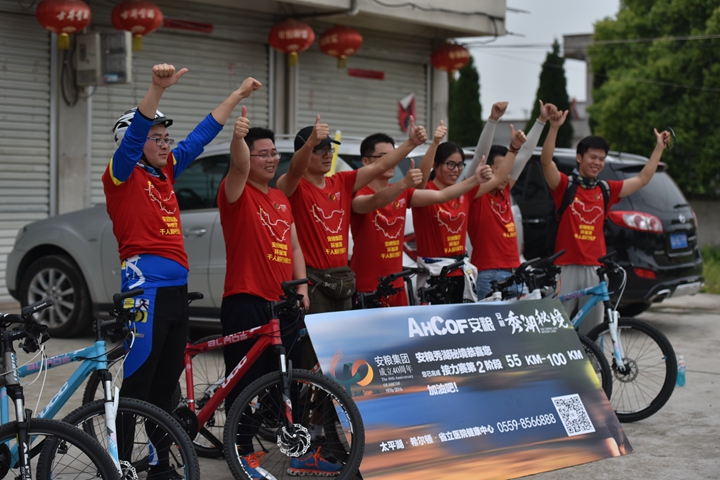 頂烈日出發(fā),迎風雨歸來, 不經(jīng)歷風雨,怎能見彩虹!本次活動旨在通過比拼耐力、團隊協(xié)作的戶外青春毅行方式,感懷安糧集團四十年艱苦發(fā)展歷程,詮釋和回顧安糧集團四十年坎坷發(fā)展之路!毅行隊伍匯聚成一股紅色浪潮,浩浩蕩蕩,與春潮共涌,隨鷗鷺爭翔。或漫步,或疾走,徒步者三五相攜,騎行者如離弦之箭。追憶往昔,暢想未來,個個喜笑顏開,人人意氣風發(fā)。披朝露,追夕照,抵烈日,沐風雨。攜手前行有春光作伴,夜幕沉沉我們從不孤獨,火熱的太陽燃燒出安糧人的激情,突來的風雨洗禮出我們的團結(jié)和堅毅。毅行隊伍一路向前,徒步騎行從容接力,通過24小時的一路堅持,穿過環(huán)巢一市三縣,不斷向目標邁進,向勝利進發(fā)!