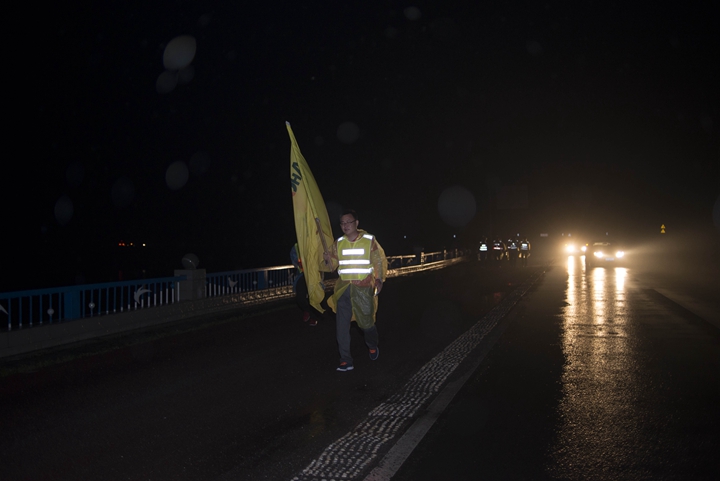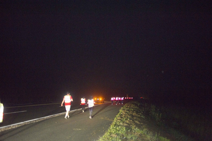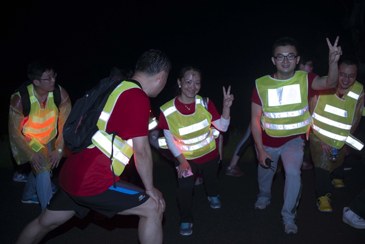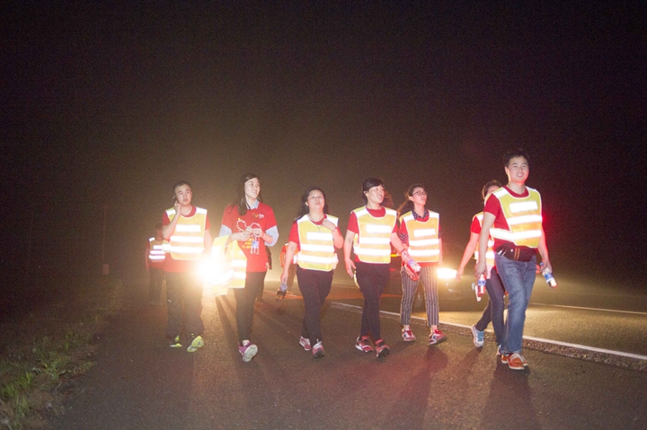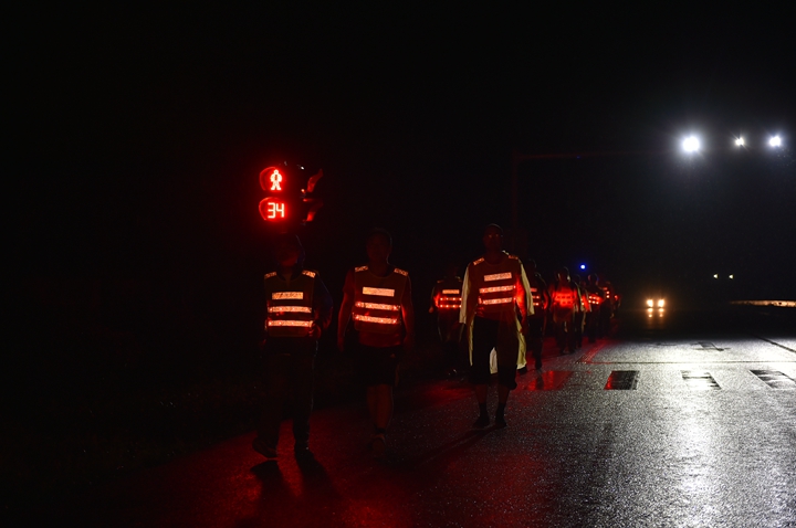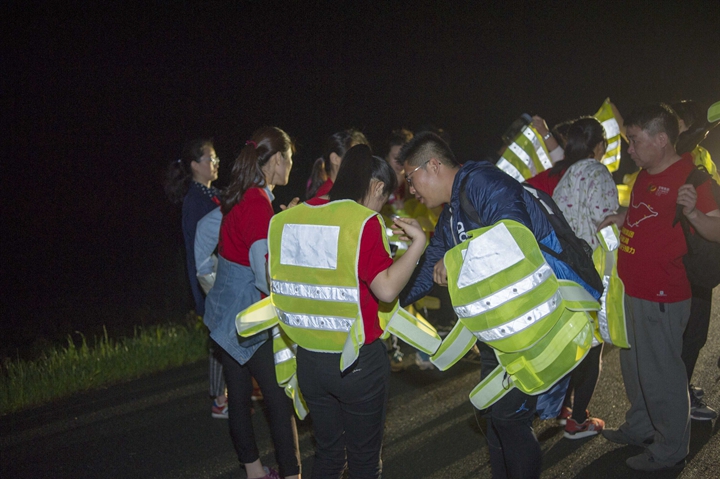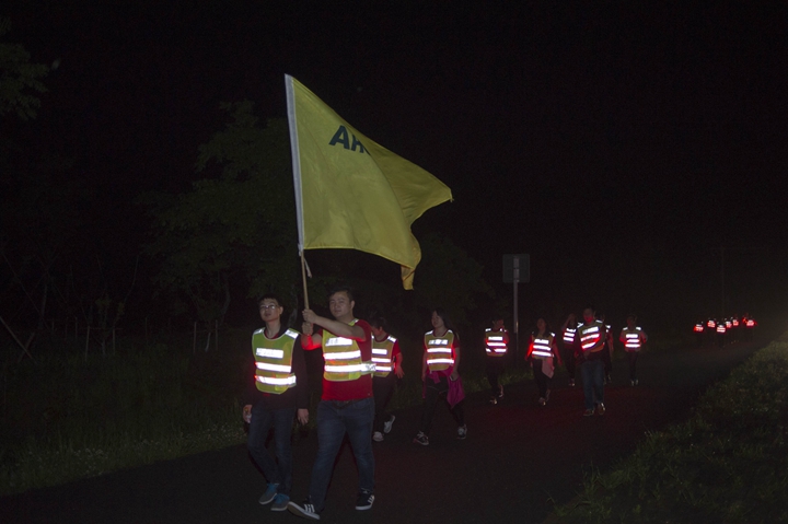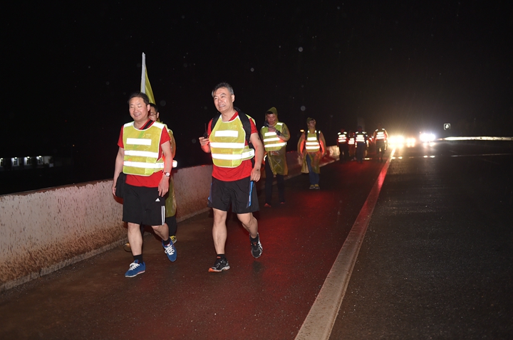 活動分徒步、騎行兩個項目,以濱湖新區(qū)渡江戰(zhàn)役紀念館為起訖點,自西向東、環(huán)巢而行,沿途先后歷經(jīng)肥東縣、巢湖市、廬江縣、肥西縣、濱湖新區(qū)。第一階段徒步毅行由解放碑出發(fā),行程10公里,參與人數(shù)700余人,12點前后陸續(xù)抵達半島碼頭接力點。第二階段全程150公里,由兩支自行車騎行大隊與四支徒步大隊組成。在第一階段隊伍全部抵達后,第二階段隊伍中午12:30騎行隊伍出發(fā),按照45km/棒開始接力。22日晚7時許,騎行隊伍抵達預定地點。19:30,徒步隊伍接力開始出發(fā),挑戰(zhàn)夜行,每15公里交接一棒。22日夜的巢湖岸邊,夜黑如墨,風大雨急,氣溫驟降,四組徒步隊員們頂風冒雨,不畏艱難、相攜相伴,堅毅前行,如時完成!