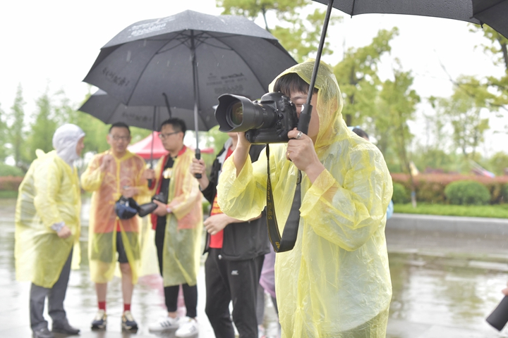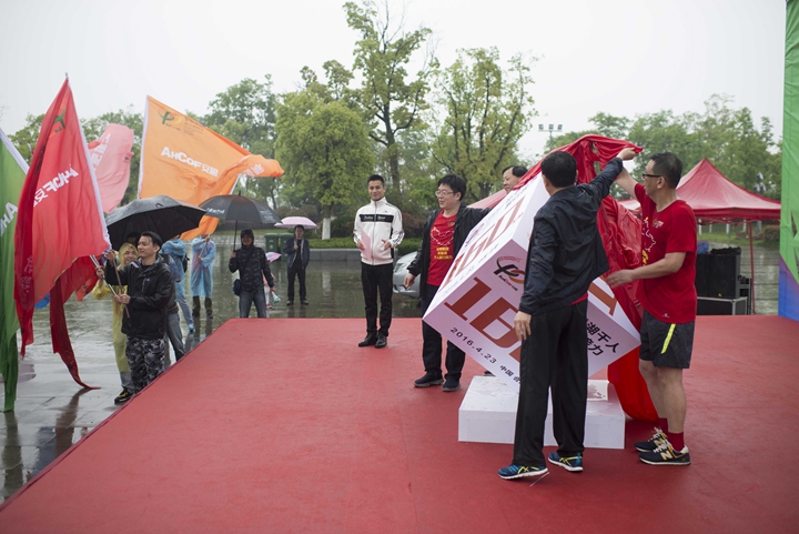 在春雨浸染的幸福氛圍中,現(xiàn)場舉行了簡短的閉幕式,集團、控股、各板塊公司領(lǐng)導,后六程接力隊員和活動志愿者共一百多人參加了閉幕式。在大家的歡呼聲中,在肥的集團領(lǐng)導班子成員為“安糧集團環(huán)巢湖毅行紀念標志”揭幕,并為后六程騎行和徒步的接力隊代表頒發(fā)紀念獎章。