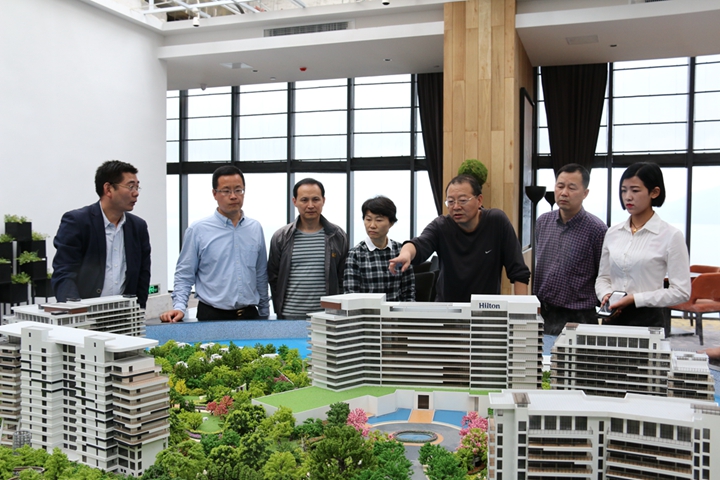 范陽董事長一行不顧旅途勞頓,首先來到項(xiàng)目辦公生活基地與員工親切交談,并參觀了員工宿舍;隨后又興致勃勃地前往山頂體驗(yàn)中心和銷售展示中心進(jìn)行考察。黃山秀湖山莊有限公司總經(jīng)理虞小伍、常務(wù)副總李克常向國貿(mào)集團(tuán)領(lǐng)導(dǎo)匯報(bào)了“安糧黃山太平湖國際旅游度假區(qū)項(xiàng)目”的整體規(guī)劃、建設(shè)進(jìn)展及內(nèi)部銷售情況。