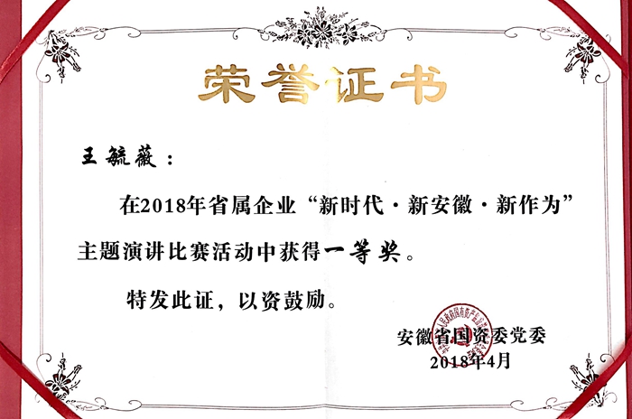 我司員工王毓薇獲國(guó)資委黨委 “新時(shí)代、新安徽、新作為”主題演講比賽一等獎(jiǎng)