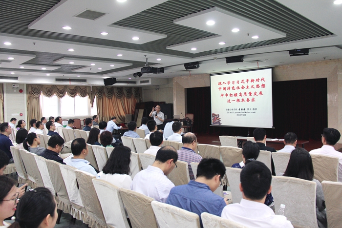 為深入學(xué)習(xí)黨的十九大精神,貫徹落實(shí)習(xí)近平新時(shí)代中國特色社會(huì)主義思想,5月25日下午,集團(tuán)黨委舉辦題為《深入學(xué)習(xí)習(xí)近平新時(shí)代中國特色社會(huì)主義思想 牢牢把握高質(zhì)量發(fā)展這一根本要求》宣講報(bào)告會(huì)。安糧集團(tuán)黨委、紀(jì)委成員,合肥建工黨委、紀(jì)委成員,各基層黨支部支委,各單位黨務(wù)、紀(jì)檢及部分中層干部、黨員共180余人參加學(xué)習(xí)。會(huì)議由集團(tuán)黨委委員曹訓(xùn)立同志主持,集團(tuán)黨委副書記、總裁方宗友等有關(guān)領(lǐng)導(dǎo)參加報(bào)告會(huì)。