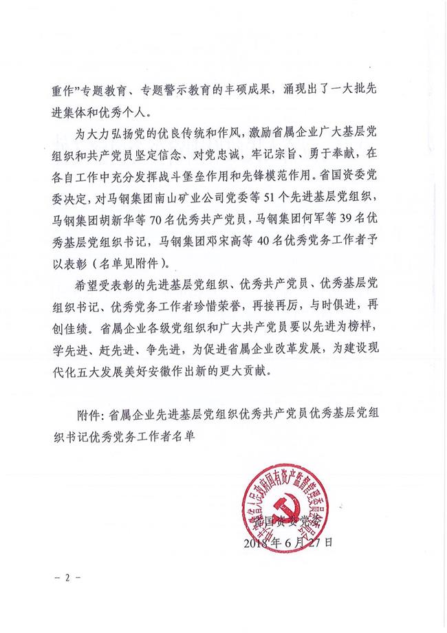 武義海同志榮獲安徽省國(guó)資系統(tǒng)“優(yōu)秀共產(chǎn)黨員”稱號(hào)