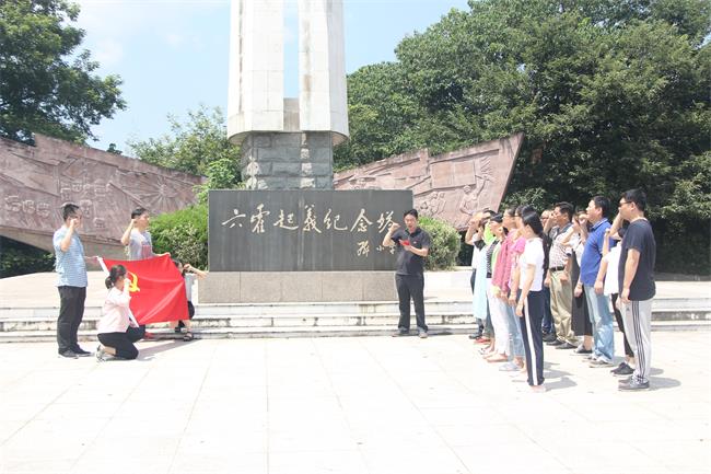 參觀完革命舊址群,頂著烈日和30多度的高溫,攀登144級臺階,大家來到了鄧小平親筆題寫的六霍起義紀(jì)念塔,在支部宣傳委員兼紀(jì)檢委員、副總經(jīng)理陳建軍帶領(lǐng)下,大家面對黨旗和紀(jì)念塔進行了莊嚴(yán)的宣誓活動。