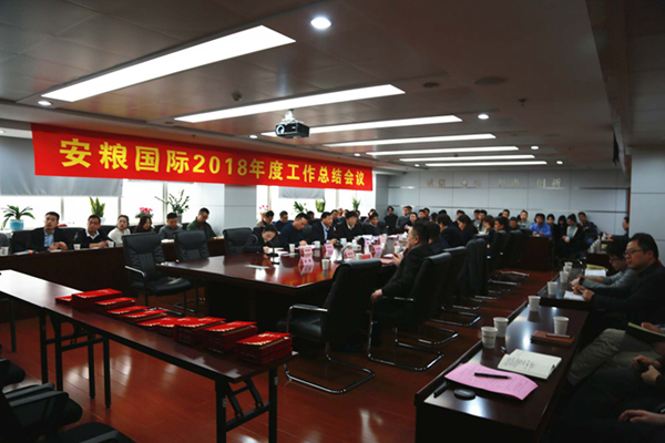 2019年3月1日上午,安糧國際召開2018年度工作總結(jié)會議。安糧國際副職及以上人員和2018年先進獲獎人員參加會議,安糧集團黨委書記、董事長曹訓(xùn)立,黨委副書記、總裁方宗友等領(lǐng)導(dǎo)應(yīng)邀出席會議。會議首先由朱亮董事長對2016-2018年度工作進行了全面總結(jié),報告回顧了過去三年公司取得成就,同時,認真分析存在的問題,總結(jié)經(jīng)驗教訓(xùn),并對2019年經(jīng)營工作展開規(guī)劃。會議對2018年獲得先進的部門和個人進行了表彰,宣布了公司組織架構(gòu)和人事安排,會上還舉行了2019年經(jīng)營目標(biāo)責(zé)任書及廉潔從業(yè)承諾書的簽訂儀式。