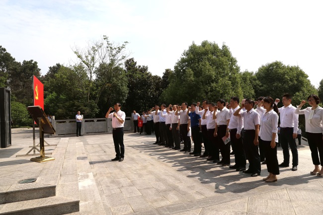 堅守初心,勇?lián)姑?/span>6月28日上午,安糧集團黨委組織集團黨委班子及系統(tǒng)各基層黨支部支委以上干部共30余人赴肥東縣茶壺山革命烈士陵園、瑤崗渡江戰(zhàn)役總前委舊址,舉行緬懷革命先烈、重溫入黨誓詞、接受革命傳統(tǒng)教育活動,并現(xiàn)場召開“不忘初心、牢記使命”主題教育動員會,以革命傳統(tǒng)教育開啟安糧集團主題教育第一課。