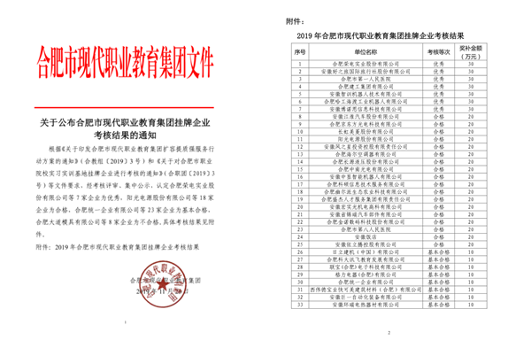 合肥建工獲得合肥市現(xiàn)代職業(yè)教育掛牌企業(yè)考核優(yōu)秀等級(jí)