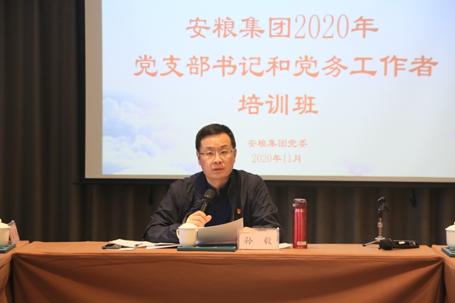 為培養(yǎng)高素質(zhì)專業(yè)化的黨務(wù)干部隊伍,夯實(shí)基層黨建工作基礎(chǔ),推進(jìn)安糧集團(tuán)黨建工作再上新臺階,根據(jù)海螺集團(tuán)黨委、國貿(mào)集團(tuán)黨委總體部署以及安糧集團(tuán)黨委年度工作計劃安排,11月5日-7日,由安糧集團(tuán)黨委組織的“2020年黨支部書記和黨務(wù)工作者培訓(xùn)班” 在安徽金寨縣培訓(xùn)中心舉辦。安糧集團(tuán)黨委副書記、紀(jì)委書記孫毅出席開班動員會并講話。集團(tuán)各基層黨組織書記、黨務(wù)工作者和宣傳工作人員近40人參加培訓(xùn)。