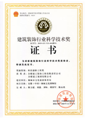 自2019年評(píng)選以來(lái),公司申報(bào)的“安徽(中國(guó))桐城文化博物館”項(xiàng)目斬獲科技創(chuàng)新工程獎(jiǎng)一項(xiàng),總結(jié)形成的施工技術(shù)成果“不規(guī)則立面齒條型GRC幕墻施工技術(shù)”獲得科技創(chuàng)新成果獎(jiǎng)一項(xiàng),走在安徽省內(nèi)裝飾行業(yè)的前沿。之后相繼獲得兩項(xiàng)科技創(chuàng)新工程獎(jiǎng):合肥市第六十八中學(xué)改擴(kuò)建項(xiàng)目-綜合樓工程,六安市兒童醫(yī)院、金安區(qū)婦幼保健院醫(yī)療病房綜合樓裝飾裝修工程;兩項(xiàng)科技創(chuàng)新成果獎(jiǎng):“一種可開(kāi)啟180度的裝飾消火栓暗門(mén)”,“ 基于3D建模技術(shù)高支模結(jié)構(gòu)與裝飾結(jié)構(gòu)共用盤(pán)扣腳手架安裝技術(shù)”。其中“一種可開(kāi)啟180度的裝飾消火栓暗門(mén)”科技創(chuàng)新成果更是獲得一等獎(jiǎng)的好成績(jī)。