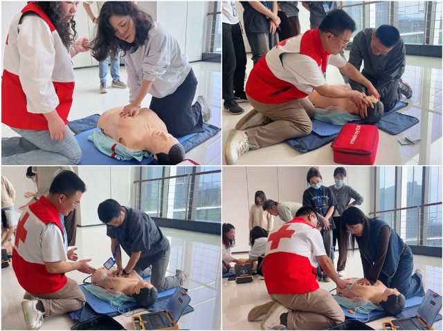活動緊扣“學(xué)技能、強擔(dān)當(dāng)、踐初心”目標(biāo),精心設(shè)置標(biāo)準(zhǔn)化急救技能培訓(xùn)課程。在安徽省紅十字會專業(yè)講師的指導(dǎo)下,黨員同志們學(xué)習(xí)了心肺復(fù)蘇(CPR)、自動體外除顫儀(AED)操作、創(chuàng)傷止血包扎、氣道異物梗阻處理等核心急救技術(shù)。針對心梗、腦卒中早期識別及燒燙傷應(yīng)急處置等日常生活中常見的突發(fā)場景,講師也進(jìn)行了專項教學(xué)。課程采用理論講解與實操演示相結(jié)合的模式,借助模擬人體設(shè)備逐項分解急救動作要領(lǐng),確保參訓(xùn)黨員能夠掌握規(guī)范、科學(xué)的急救流程。