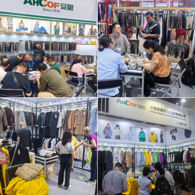 服裝展位則緊扣“綠色環(huán)保”與“工藝創(chuàng)新”兩大趨勢:棉服系列采用再生棉材質,精準契合全球低碳消費需求;PU雨衣類服裝應用高頻工藝,無需縫線即可實現平整外觀,兼顧視覺美感與實用性能。這一系列創(chuàng)新產品成功吸引來自法國、英國、比利時等歐洲中高端市場采購商重點關注,已有多組客戶明確表達合作意向。
