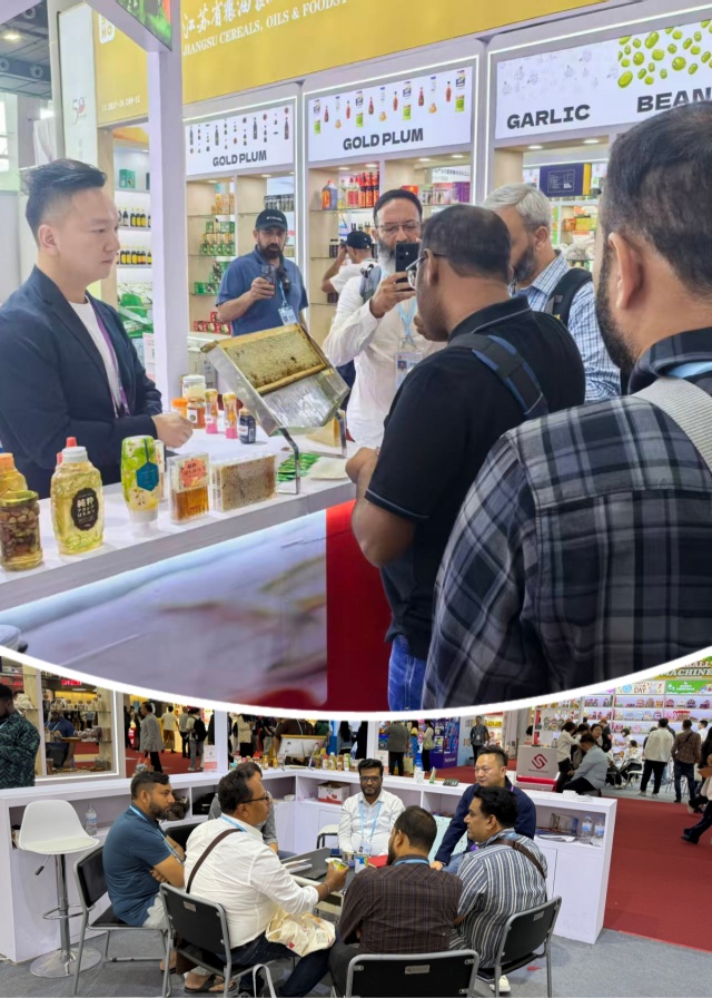 蜂蜜產品通過邀請采購商現場試吃巢蜜,直觀傳遞產品“純天然”核心特質,成功為展位聚集超高人氣。來自中東、東南亞采購商圍繞巢蜜的規(guī)格、品質與業(yè)務員展開多輪洽談;其中,孟加拉國采購商已就液態(tài)蜂蜜產品明確采購意向,雙方當前已進入實質性合作磋商階段,有望快速轉化為穩(wěn)定訂單。