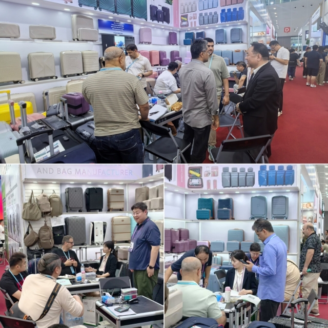在箱包展區(qū),為精準匹配全球不同市場消費需求,箱包團隊精心籌備70余款樣品,涵蓋新款外觀PP箱、鋁框前開PC箱、大容量軟包等多材質、全尺寸產品,更推出雙面前開PP箱、可壓縮雙肩背包等潮流新品,全面覆蓋出行、收納等多元場景。多款樣品憑借“輕便抗摔、易于定制、辨識度高”的核心優(yōu)勢,成為采購商關注焦點。開展首日,箱包展區(qū)便迎來“開門紅”,不僅斬獲歐洲、中東、南美等多區(qū)域客戶的現場簽單,同時與數十位全球采購商達成明確采購意向,展現出全球市場對安糧箱包產品的高度認可。